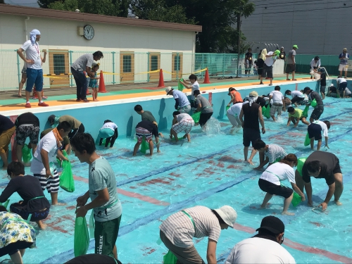 うなぎつかみ大会 大盛況