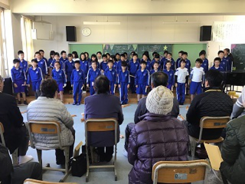 12月4日(水)4年生がさつまいもの栽培でお世話になった地域の方をお招きして「ふれあい交流会」を行いました。地域の方々には子どもたちと一緒に給食を食べていただいたり、一緒に「もみじ」を歌っていただいたりと楽しい時間を過ごさせていただきました。黒板を開くと子どもたちの力作が現れ、主体的に準備に取り組んだ4年生の成長を感じました。