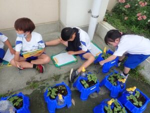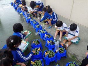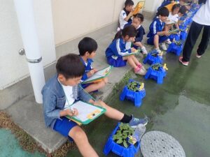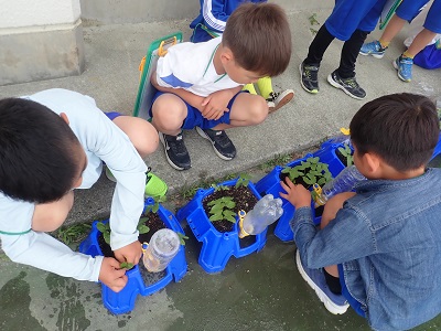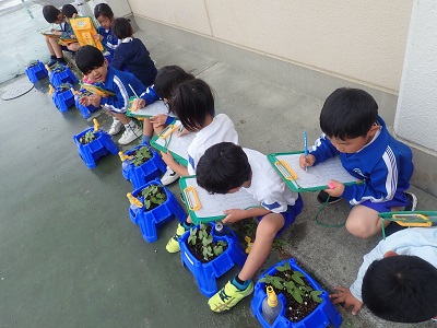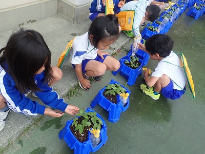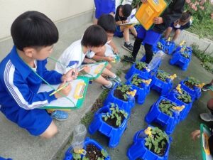ホーム > 学校活動の様子 / 2023年度 アサガオのかんさつ!!(1年) 今日は、朝、雨が降って涼しい日になりました。1年生では5月12日に種まきをしたアサガオの観察をしていました。2週間近くたって、双葉がたくさん出ていました。かんさつカードに、葉の絵と、目で見てわかること、手で触ってわかることをかきました。どんなことを発見したかな? シェアする Twitter でシェア はてなブックマークに保存 LINE でシェア Facebook でシェア Pocket に保存 Feedly で購読 関連投稿 2024年度 / 学校活動の様子 学習の様子は・・・?! 2024年度 / 学校活動の様子 近づく春を感じながら?!(5年) 学校活動の様子 / 2020年度 分散登校開始です 学校活動の様子 / 2022年度 メダカの学校<11月編>!?(4年) 学校活動の様子 / 2023年度 発表会の準備!?(2年) 2024年度 / 学校活動の様子 なかよし班スタート!! 前の投稿 ふれあい農園!!(1・4年) 次の投稿 分数をわる計算は・・・?!(6年)