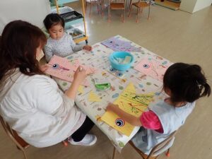 ホーム > 学校活動の様子 / 2023年度 保育参観ありがとうございました!! 幼稚園は午前中が保育参観でした。いつもは子どもたち同士で遊んでいますが、おうちの人たちと遊んでいる姿をたくさん見ることができました。子どもたちは、幼稚園でもおうちの人と遊べてうれしかったでしょうね。 熱い日でしたが、参観後も子どもたちは、こいのぼりの作ったり、外で元気に遊んだり、虫を捕まえたりと元気でした。 シェアする Twitter でシェア はてなブックマークに保存 LINE でシェア Facebook でシェア Pocket に保存 Feedly で購読 関連投稿 学校活動の様子 / 2021年度 避難訓練をしました 学校活動の様子 / 2020年度 春休み 桜だより 2024年度 / 学校活動の様子 本はともだち!!(2年) 2024年度 / 学校活動の様子 気付いたかな?? 2024年度 / 学校活動の様子 おばけ屋敷どうでしたか?! 学校活動の様子 豆電球に明かりをつけよう!!(3年) 前の投稿 松阪市小中学校タブレット端末利用規約 次の投稿 授業参観ありがとうございました!!
