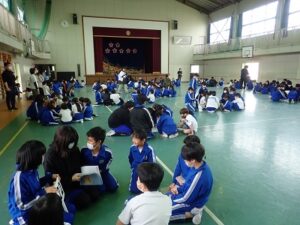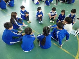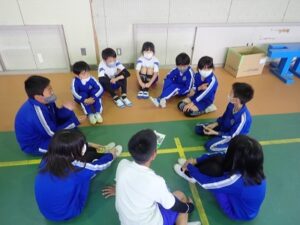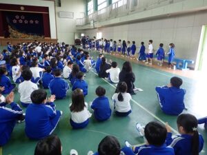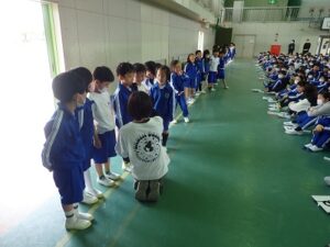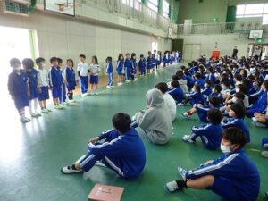 昨年度はできなかった1年生との対面式を行いました。1年生の子どもたちが、一人ひとり名前と好きなものを発表しました。1年生の子どもたちの好きなもの・・・「いちご」「チ○〇〇ー〇ン(チャーシューメンではありません)」「ポケ〇ン」「ミン〇ィア」「シ〇モ〇ール」などいろいろでした。中には「勉強」「国旗」と発表した子もいました。後半は、なかよし班別での顔合わせと掃除場所の確認をしました。昨年度の6年生の人たちが卒業記念品として作ってくれたなかよし班のプラカード、さっそく使わせてもらいました!!