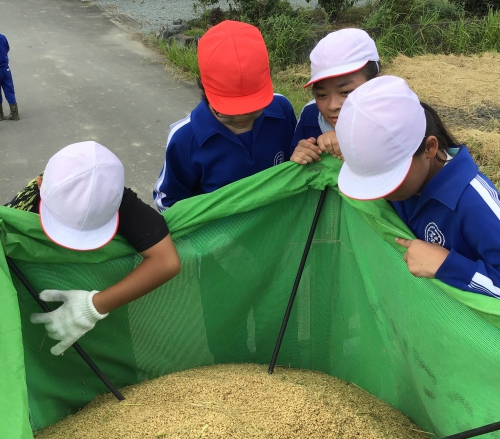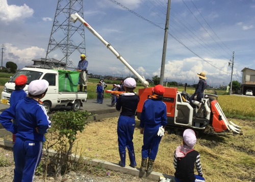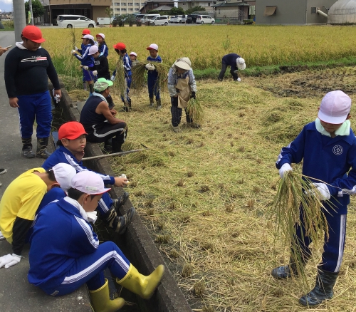 今日は5年生が稲刈りをしました。厳しい暑さの日となりましたが、稲を刈る係、運ぶ係などチームに分かれて作業を行い、無事収穫することができました。いつもお世話になっている大久保さん、CSボランティアのみなさま、JAのみなさま、ありがとうございました。保護者のみなさま、準備ありがとうございました。