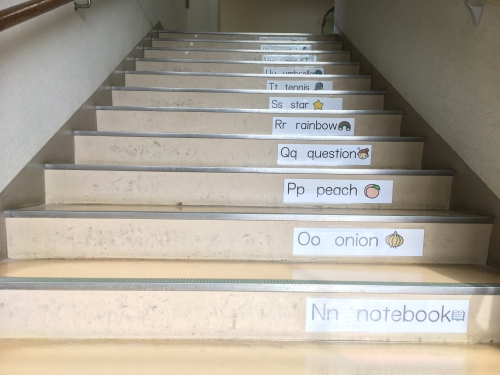 ホーム > 学校活動の様子 階段でステップアップ 港小学校の階段です。子どもたちは一段一段のぼりながら英語の単語を覚えていきます。壁には漢字やことわざ。こちらは、地域の大人の方に好評です。「漢字を忘れとるわ」と楽しんでいただいています。 シェアする Twitter でシェア はてなブックマークに保存 LINE でシェア Facebook でシェア Pocket に保存 Feedly で購読 関連投稿 学校活動の様子 / 2023年度 5年生社会見学④(エネルギー体験) 学校活動の様子 / 2022年度 かめちゃんでお買い物!?(幼) 学校活動の様子 / 2023年度 今日の様子は?! 学校活動の様子 / 2021年度 冬休み前のお話 と とこわか国体映像 学校活動の様子 / 2023年度 / コミュニティ・スクール 収穫の秋!!(1・4年) 学校活動の様子 6年生を送る会 3・4年 前の投稿 ミニ運動会を行いました。 次の投稿 2年生が松阪駅の見学に行ってきました。