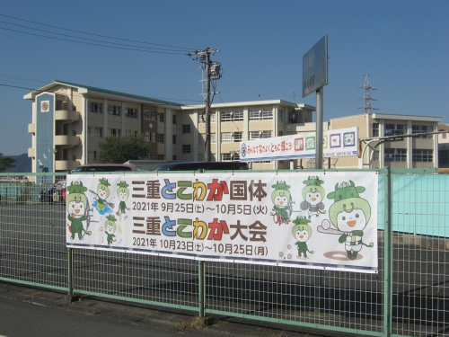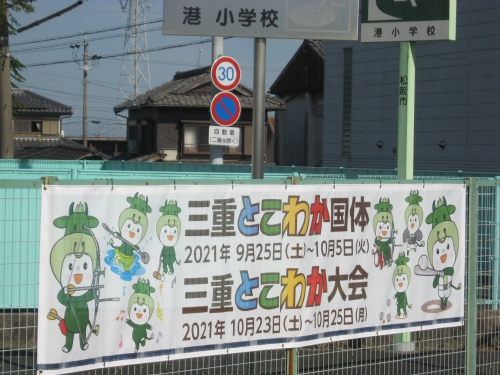 開催日まで、あと約300日となりました。(本当は29日ですが)松阪市内の小中学校は、広報活動への協力の一環として、横断幕を掲出します。