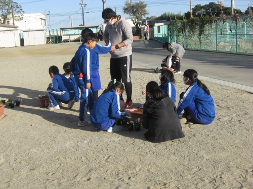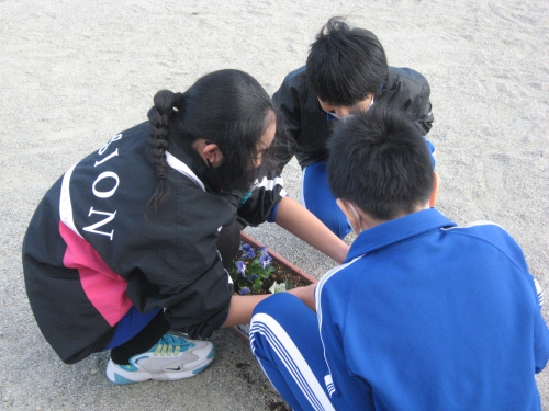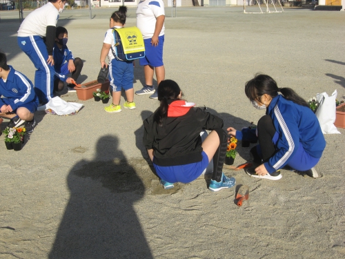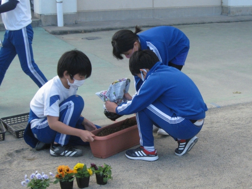 昨日、6年生がプランターに花を植えました。お天気が良かったので、外の作業もしやすくて良かったです。