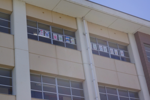 昨日、4・5年生が準備してくれた会場では、たくさんのメッセージもありました。急遽4階の窓にもお祝いメッセージが張り出されていました。