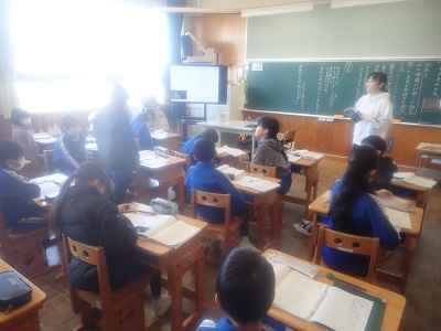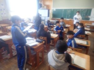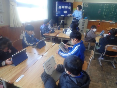 ホーム > 2024年度 / 学校活動の様子 国語の勉強で!!(1・2・3年) 1年生は今週木曜日の日に港幼稚園の子どもたちと交流します。幼稚園のきく組さんは、もうすぐ1年生になるので、一足早く小学校の体験です。国語の時間に「これはなにでしょう」という学習をしているのですが、当日、その学習で考えたことを問題として幼稚園の子どもたちに出します。1年生の子どもたちはタブレットも使いながら、どんな問題にするのか話し合っていました。 2年生は、「ようすをあらわすことば」について、3年生(3A)は、「モチモチの木」の学習をしていました。 シェアする Twitter でシェア はてなブックマークに保存 LINE でシェア Facebook でシェア Pocket に保存 Feedly で購読 関連投稿 2024年度 / 学校活動の様子 二条城を見学!! 学校活動の様子 / 2022年度 おつかれさま、閉会式 学校活動の様子 / 2021年度 鎌田中学校一日入学 学校活動の様子 9月3日 給食開始 2024年度 / 学校活動の様子 水!かけすぎだよ・・・!?(幼) 学校活動の様子 / 2023年度 港スポーツ大会!(5・6年) 前の投稿 おなかも思い出もいっぱい!!(幼) 次の投稿 6年生を送る会!!<前編>