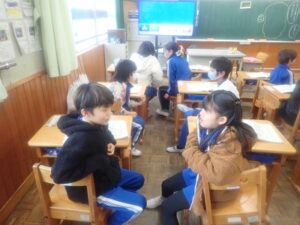 3Aの子どもたちが、道徳の時間に「ぽかぽか言葉ととげとげ言葉」について考えていました。リレーで失敗した友だちにどんな言葉をかけるか?どんな言葉をかけると相手はうれしいか、かなしくなるか、ペアや全体で話し合っていました。「校長先生に言う!」と言っている子もいましたが、自分だったらこういうかな、こんな言葉をかけてくれるとうれしいかなと考えて、たくさんの子が発表していました。ぽかぽか言葉がいっぱいの教室に、みんなでできるといいですね。