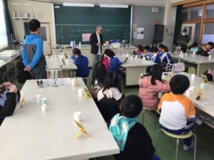 12月11日、3・4限目に学校歯科医の中北先生に「正しい歯のみがき方をおぼえよう」というめあてでハミガキ指導をしていただきました。正しい歯みがきの仕方と、歯ブラシの使い方のポイントを教えていただきました。その後、歯垢の染め出しを実施し、自分たちで汚れを確かめながら、歯みがきの実習をしました。