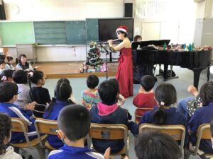 12月15日、港幼稚園から本校1年生が招待され、心温まる「クリスマスコンサート」を楽しみました。