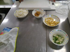 ら、班で協力して調理を進めました。火加減に気を付けながら大根が柔らかくなるまでじっくり煮込む姿が見られました。