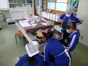 3・4時間目の家庭科の時間に、5年B組が調理実習を行いました。