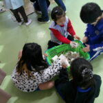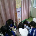 まず始めに、2年生が生活科で製作したおもちゃを使って、園児と一緒に遊びました。遊び方を優しく教えてあげる姿や、園児の笑顔を見て嬉しそうに寄り添う様子が見られ、2年生の成長を感じるひとときとなりました。