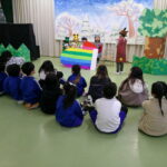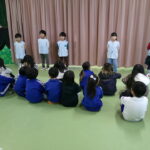 その後、園児の皆さんからは、元気いっぱいの歌「うたえバンバン」と、かわいらしい「てぶくろ」の劇が披露されました。2年生は目を輝かせながら楽しそうに見入っており、会場は温かい拍手に包まれました。